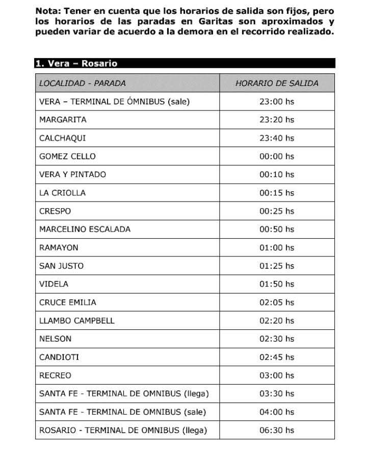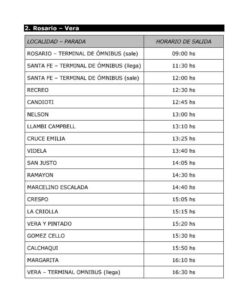 En los cronogramas que se detallan a continuación se puede observar cómo tanto desde un punto de partida a otro el transporte gestionado por el Senador Rodrigo Borla recorre todo el territorio del departamento San Justo a través de la ruta nacional 11.