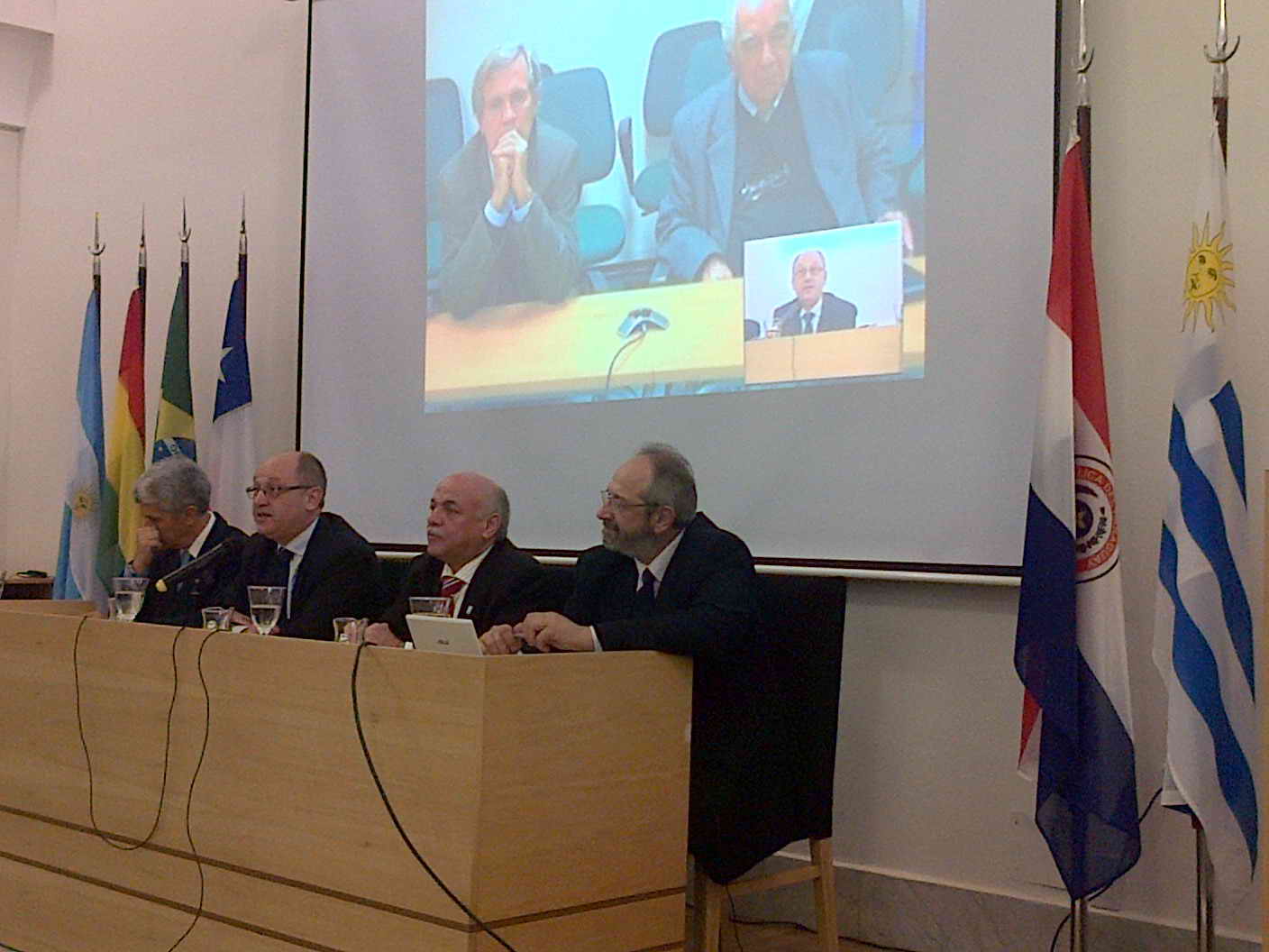 Mientras que por teleconferencia, desde Montevideo, Uruguay, estuvo presente el ex rector de la Universidad de la República, Uruguay, Jorge Brovetto, y su actual rector, Rodrigo Arocena.
